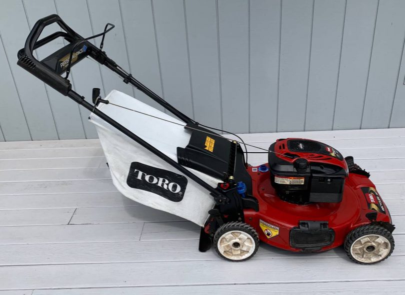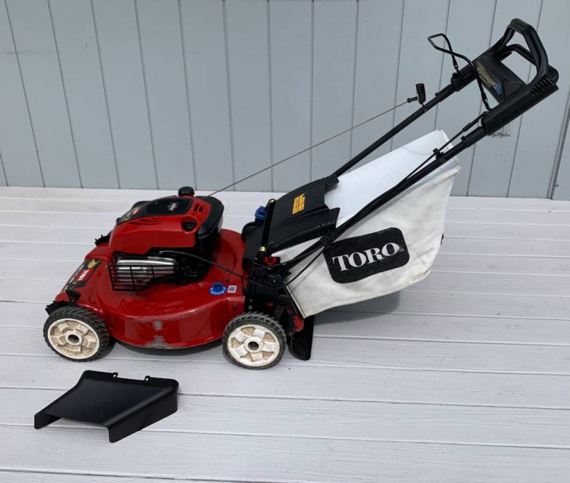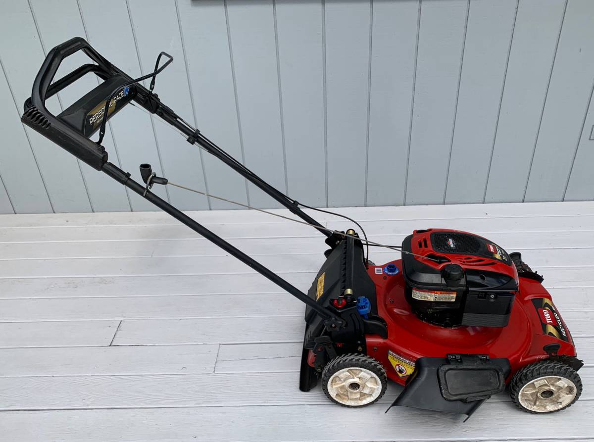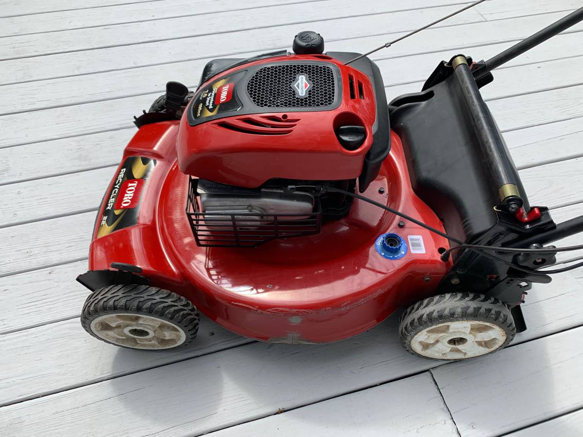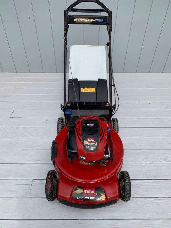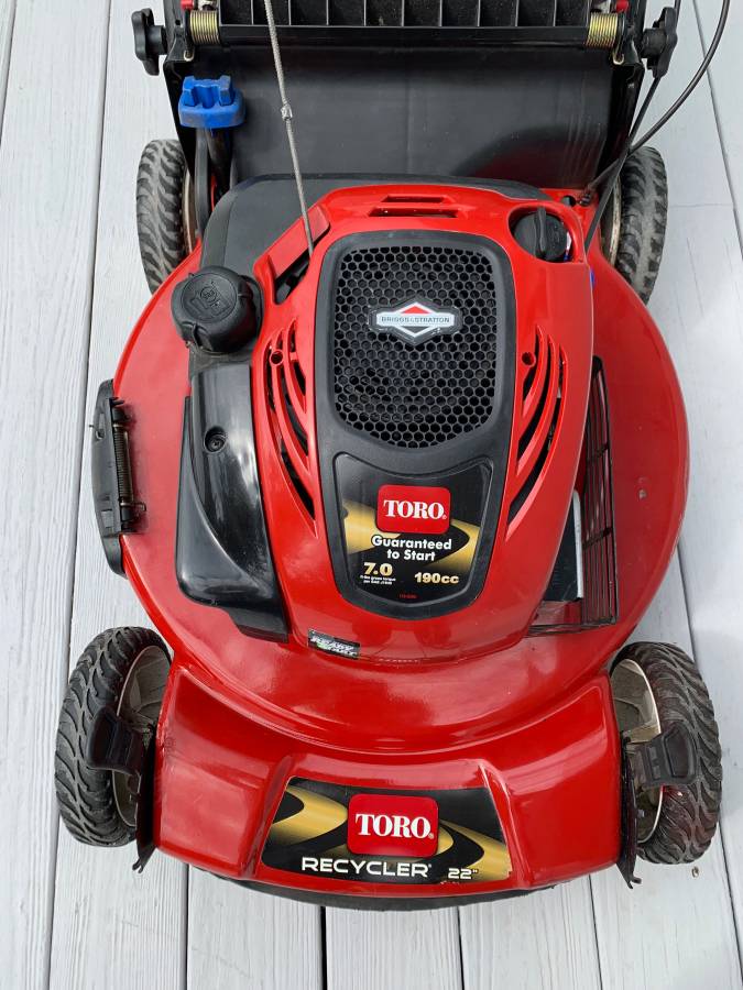 Mower is in excellent condition – starts right up and runs great -22″ cut width -recently serviced – fresh oil change & carburetor has been cleaned -all knobs, caps, levers are in great shape -bag is in good shape – interior of bag has some discoloration from grass clippings and corners of bag show some wear – please note condition as noted in photos -has side shoot – as shown in photos -underside