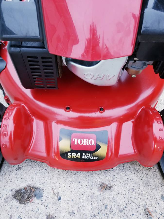 Toro super recycle self-propelled lawnmower with a personal pace feature. Aluminum decking is impervious to rust. The roto stop model allows you to easily stop the blades without having to shut down the engine to empty the grass bag first. The rear wheels driver has variable speed, which allows you to adjust your walking speed. It is simple to control the mower. When you first turn on the computer, everything works perfectly without any problems. If you are interested, please text for the best response.