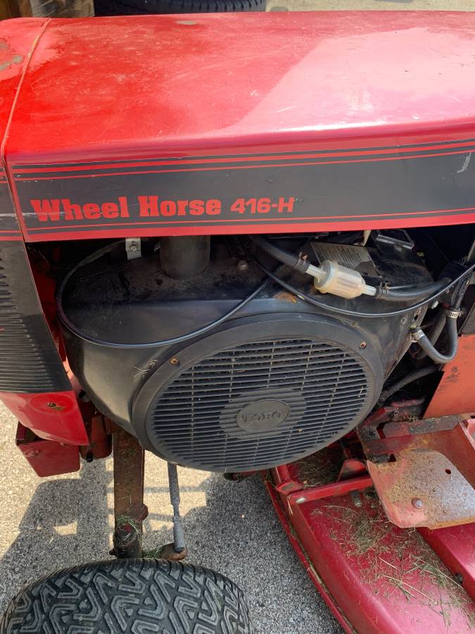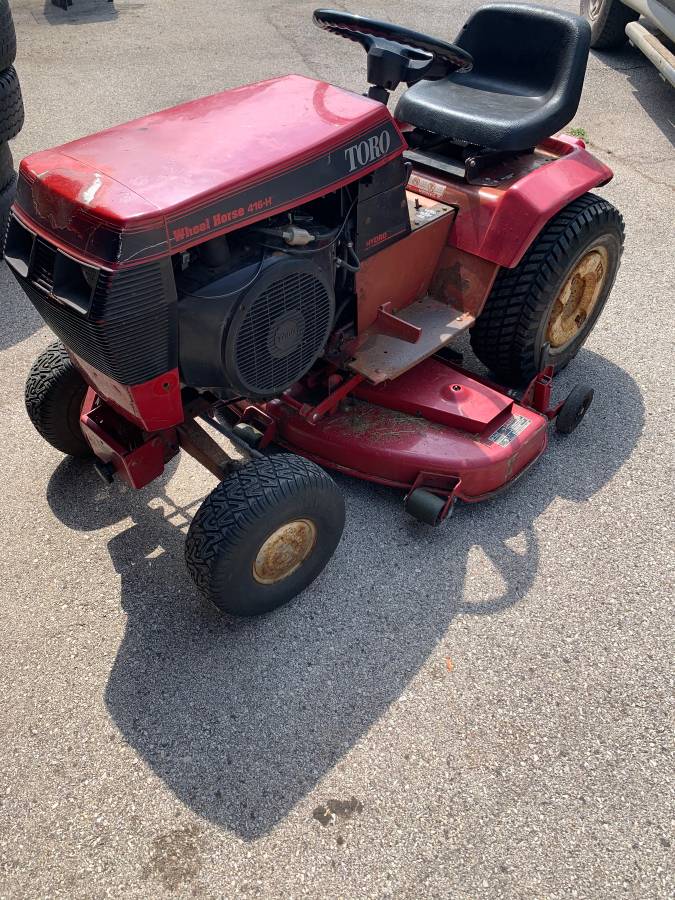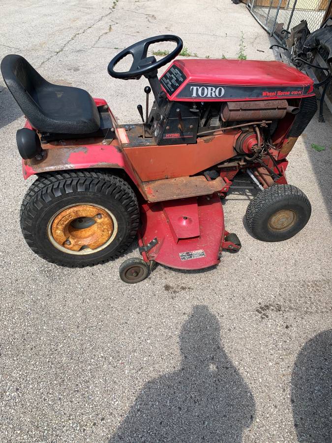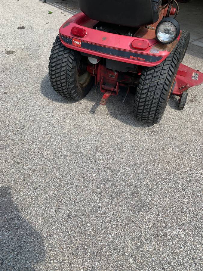 416-H Toro Wheelhorse riding mower with 48-in mower deck, snowblower, wheel weights, and tire chains. With Onan engine it is in excellent running condition! Has on the machine and engine for just over 1000 hours. I had a float pin replaced recently in carb. And an exclusive seal on the transmission. It is driving hydro statically! Tires are in fine form! It’s snow-blow and mow ready! Asks for $850.00. Check out my pics!