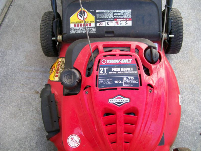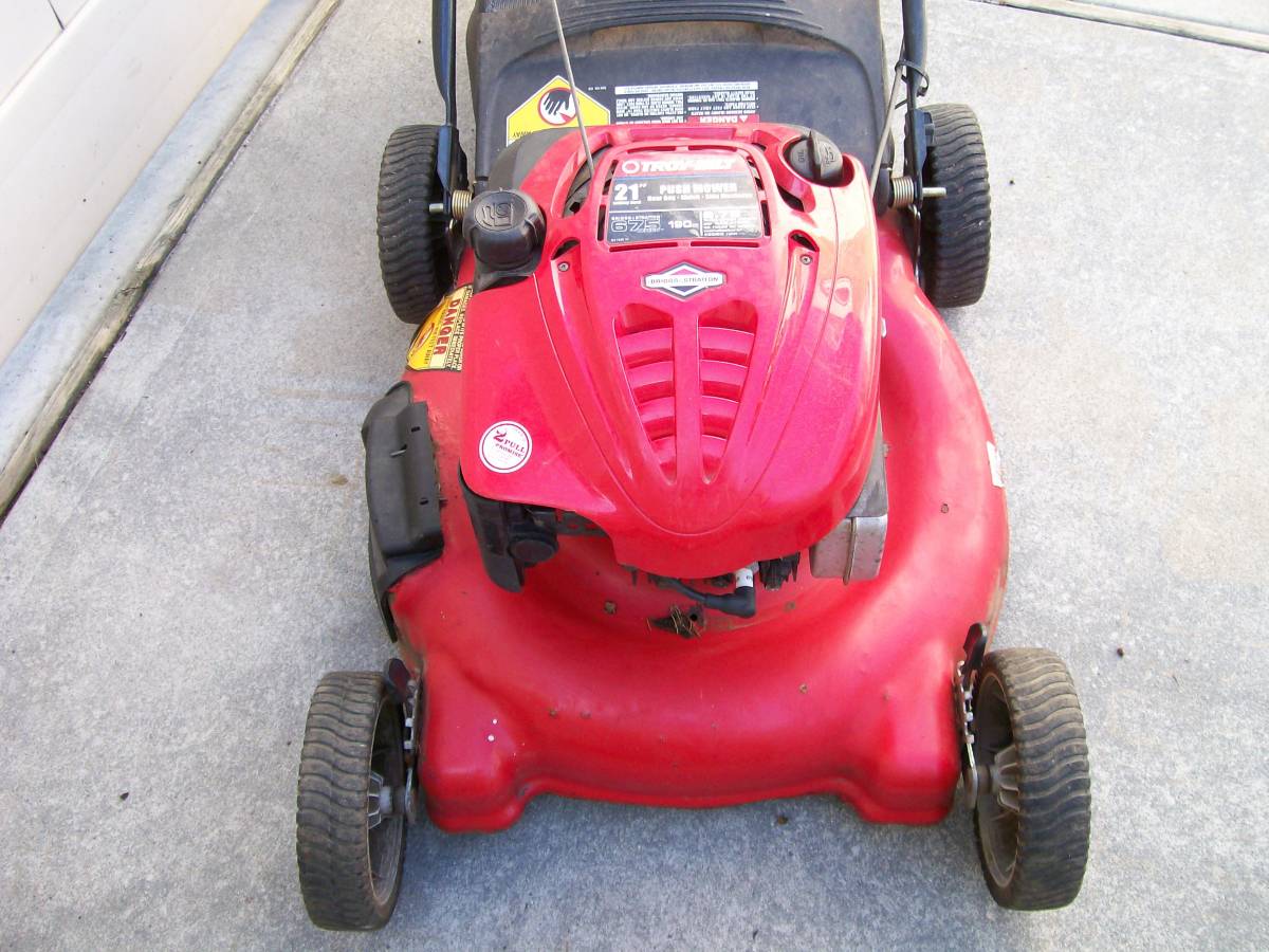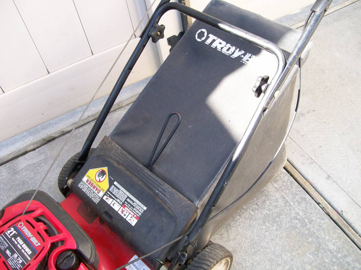 This is a Troy Bilt Push Mulching Lawn Mower. Very good condition. The engine is a 6.75HP/190cc Briggs with an Auto Choke. There is no need for priming; simply pull the cord and mow. Starts quickly and runs strongly. Has a brand new air filter, oil change, and a new Champ spark plug. Ready to use for leaf collection. A grass catcher bag is also included. There will be no haggling over the price of everything.