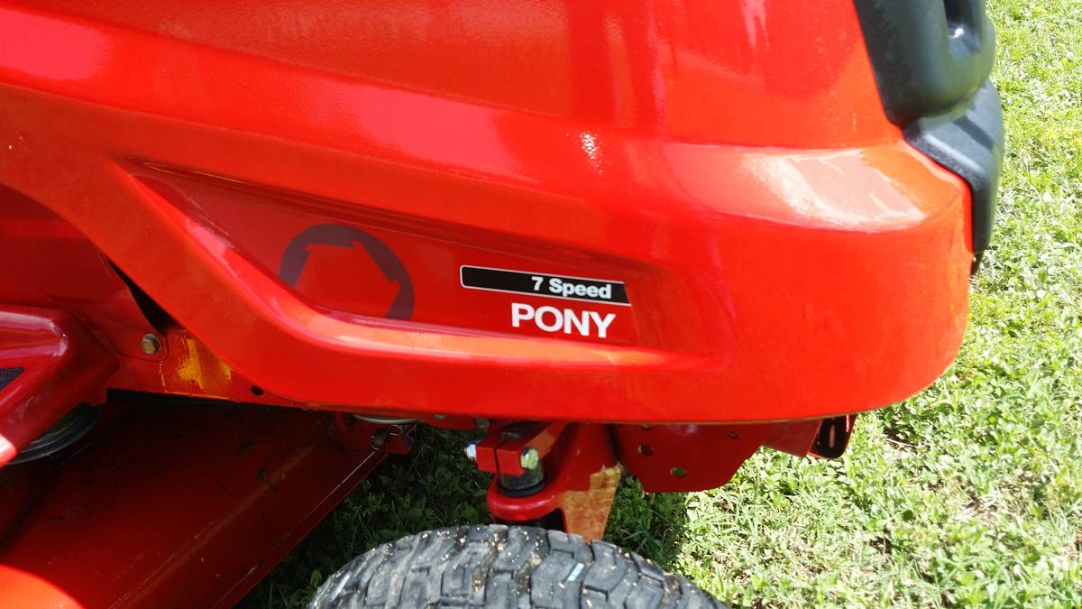 With the Pony riding lawn tractor, get solid, powerful efficiency and plenty of energy. The Pony lawn tractor features a StepThruTM frame of 13-gage steel, 17.5 HP * Single Briggs & Stratton ® motor and a smooth Shift-on – the-Go 7-speed transmission for effortless velocity modifications.