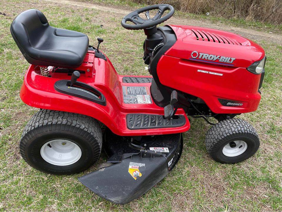 This Troy-Bilt Bronco Riding Lawn Mower has been maintained properly and cared for. New Blades, New Cutting Deck Belt, New Drive Belt, New Transmission Belt, New Spark Plug, New Fuel Filter, New Air Filter, Fresh Oil, and New Oil Filter were all part of the seasonal maintenance just completed. It comes with a 42-inch cutting deck and two anti-scalp wheels. An amp meter is included to keep track of the battery’s charging status. The Riding Lawn Mower also has Cruise Control, which allows it to maintain a consistent speed in rough terrain. The engine is a powerful 20 HP Kohler Courage engine that provides enough power and torque for any demanding task. Automatic Transmission with Blade Engage and easy-to-use variable speed control (Gas Pedal). It’s time to mow! For a reasonable fee, I’m willing to deliver with my trailer.