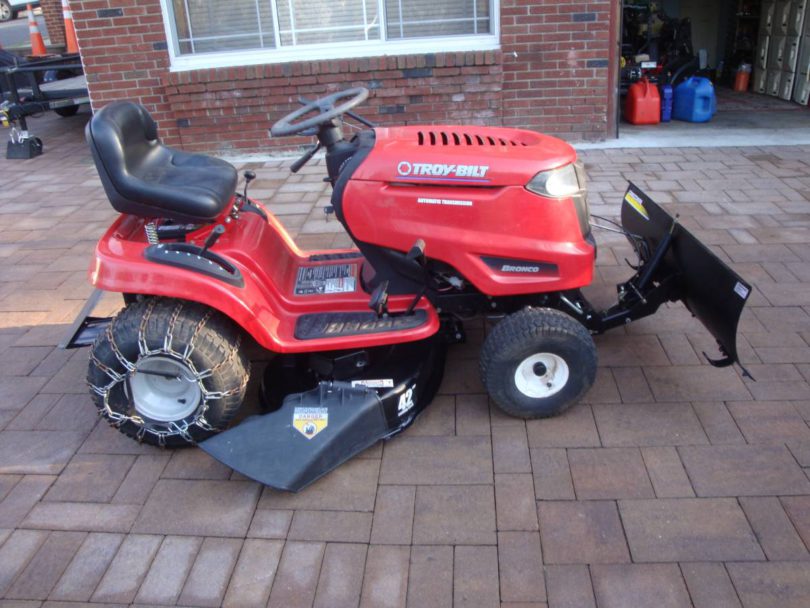 For sale is a Troy Bilt Bronco Riding Lawn Mower with a 42-inch cutting width “deck, as well as a 20 HP Kohler Courage. It has a new battery, a new carburetor and air filter, new oil and filters, and a new fuel filter. It is in excellent condition.
