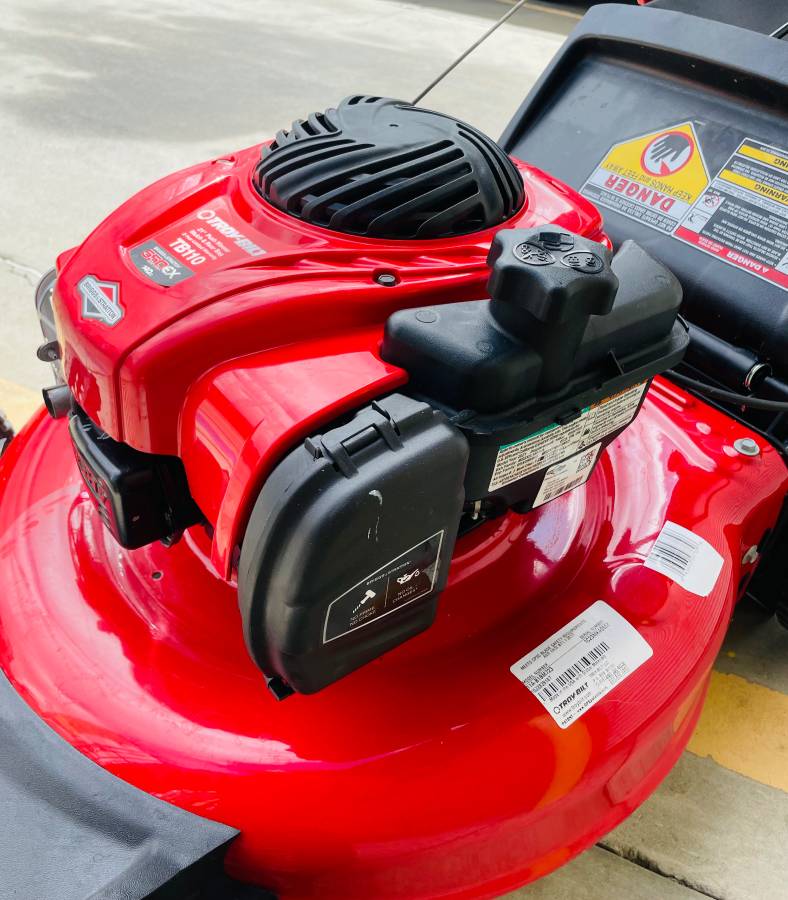 Available for purchase is a Troy-Bilt TB110 Push Lawn Mower, featuring a 21-inch cutting blade and a 140cc Briggs & Stratton ReadyStart engine, which is engineered for easy starting. Although it is pre-owned, it remains in excellent condition.