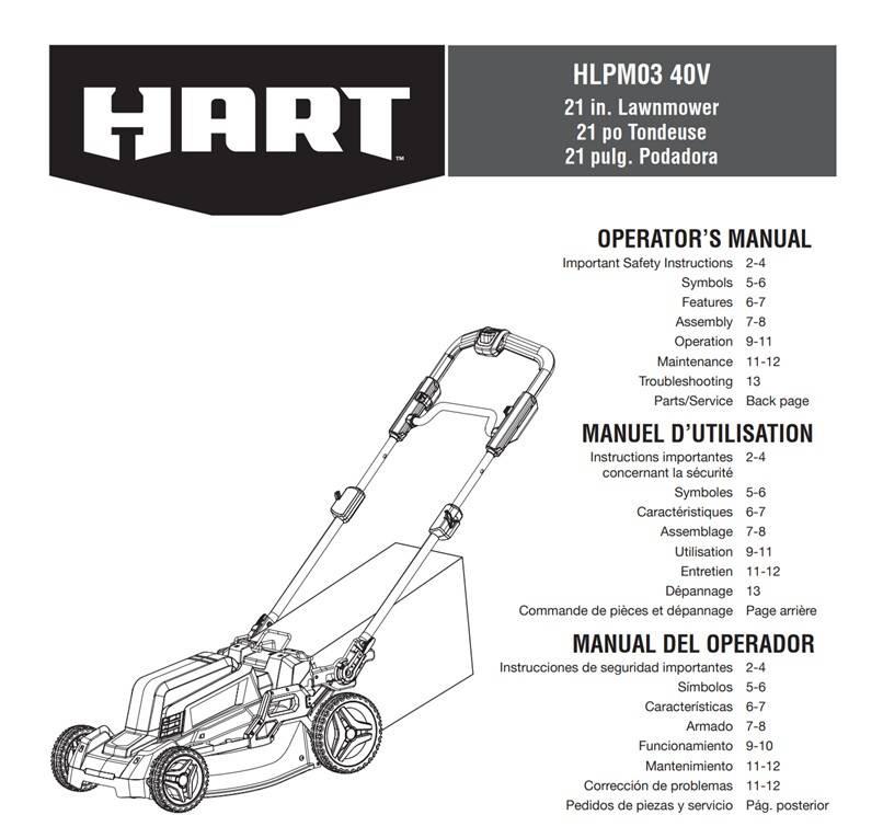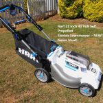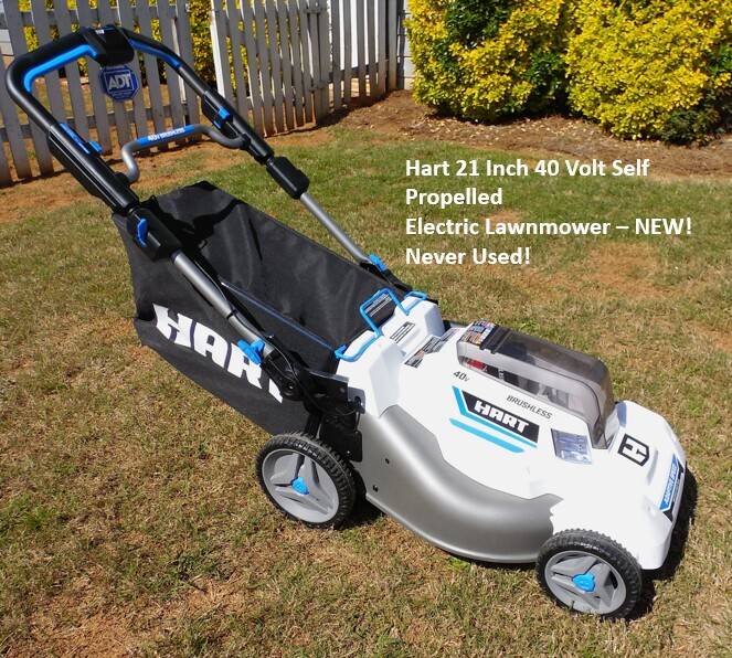 For sale is a Hart 21-inch 40V Self-Propelled Electric Lawnmower with an AC Recharger Pack.