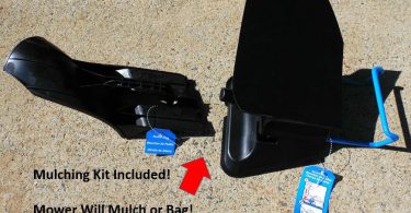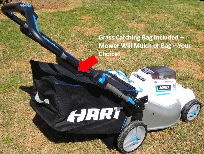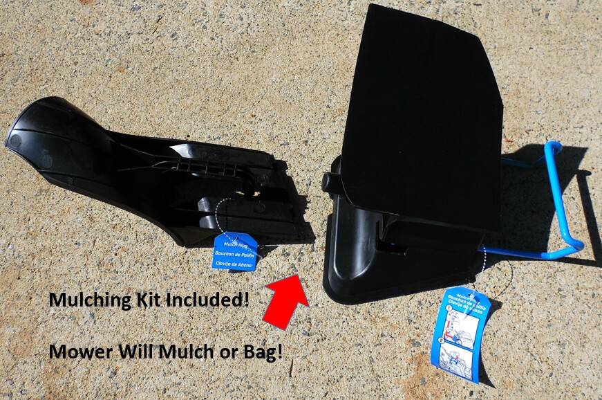 Mulch plug and grass capturing bag are included – choose between mulch and bag grass.