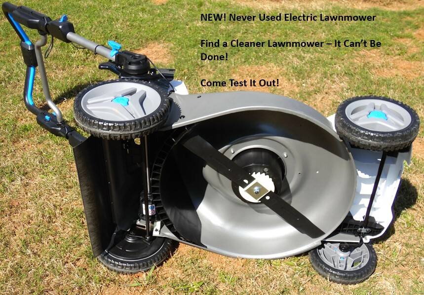 * Grass Catching Bag Included * Mulching Plug Included * Easy Push Button Electric Start (No More Rope Pulling) * Folding Adjustable Length Handle for Easy Storage (Mower folds to the size of a suitcase and stands on end) * Operators Manual Included