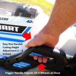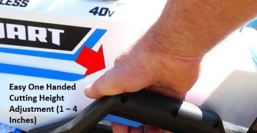 With the one-hand trigger, you can easily control the mowing height (1 – 4 inch cutting height).