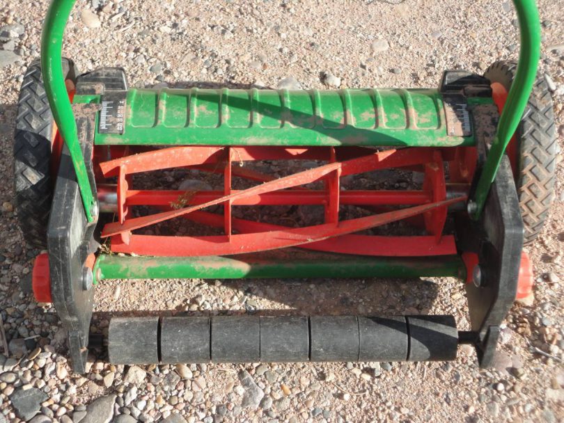 The Brill reel mower ships with pre-adjusted blades, so initially you won’t have to mess with it. The manual of the Brill owner also comes with a small metal strip and a really complicated explanation of how the blades can be adjusted. The method works, but the German approach is a complicated one. I’ll tell you the easy way for America to do the same thing!