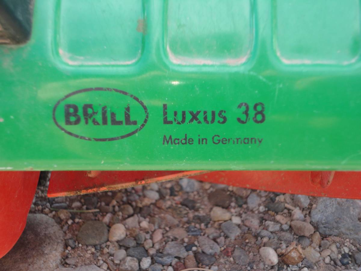 Used Brill Luxus 38 reel lawn mower for sale with debris bag. The Brill Luxus 38 is a reel mower made in Germany weighing approximately 17 lbs. It has 5 blades and a cutting distance of up to 45 mm from 15 mm. It’s about.7′′ to 1.9′′ inches. This pushes a direction that is about 15 1/2 inches wide by 38 cm. The Brill has a silent cut feature, meaning that when the blades turn, the blades do not touch the cutter handle. It decreases friction, which makes the mower a little easier to drive, and also makes it much longer for the blades to go before they need any sharpening.