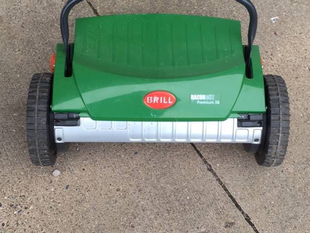 Brill Lawn Mower on Push Reel. Cutting range of 15 inches wide. Height adjustable . Comes with an addiction to collecting grass. Superb working environment. Weighs just 17 lbs, light enough to hang up on the wall of the garage. Great for little yards, and areas impossible to access.