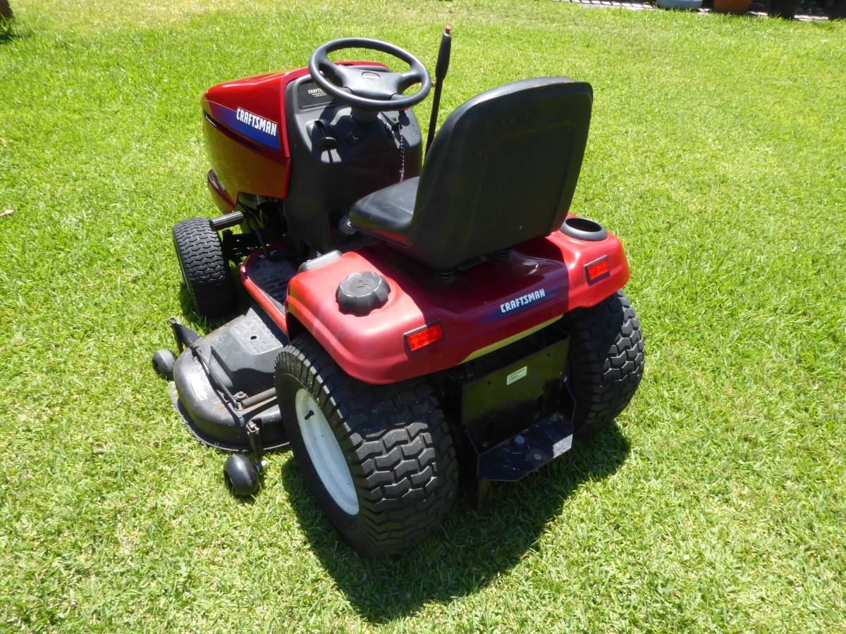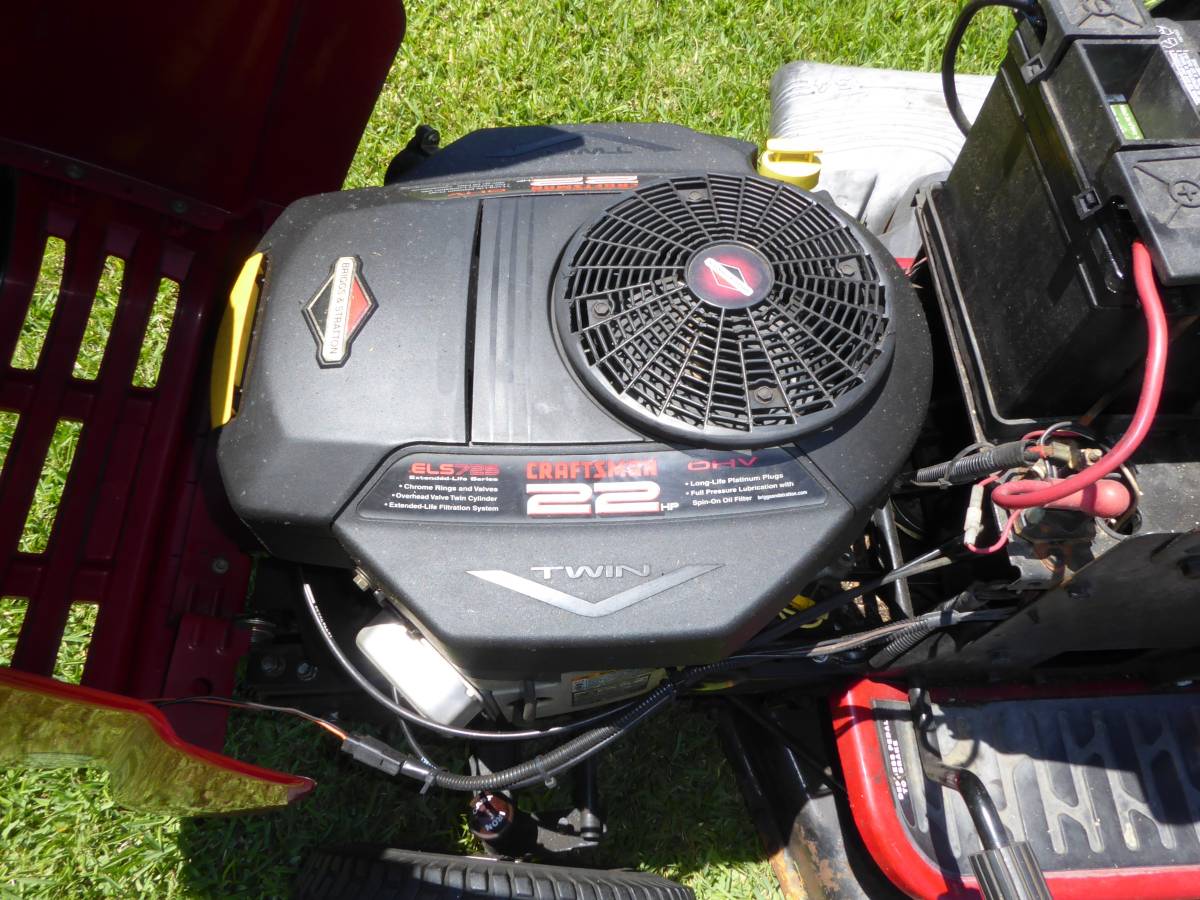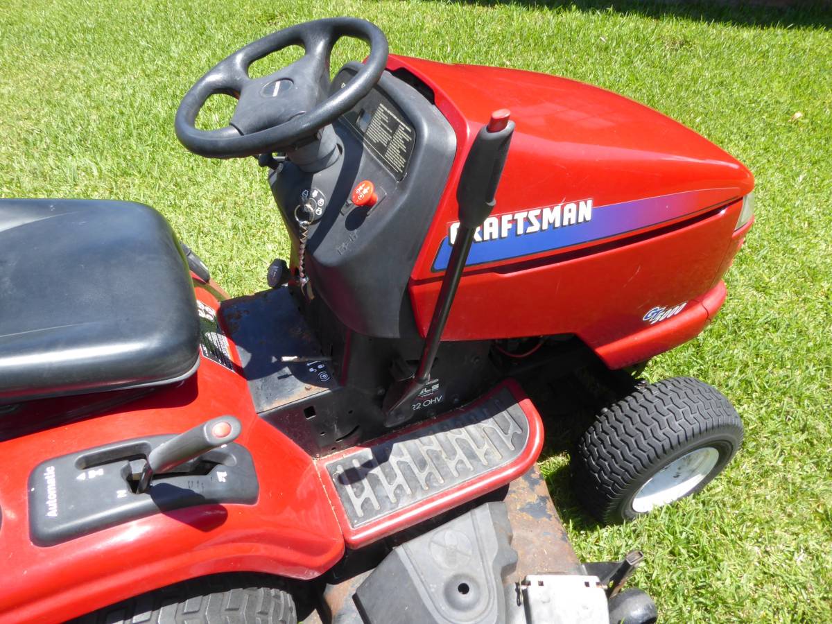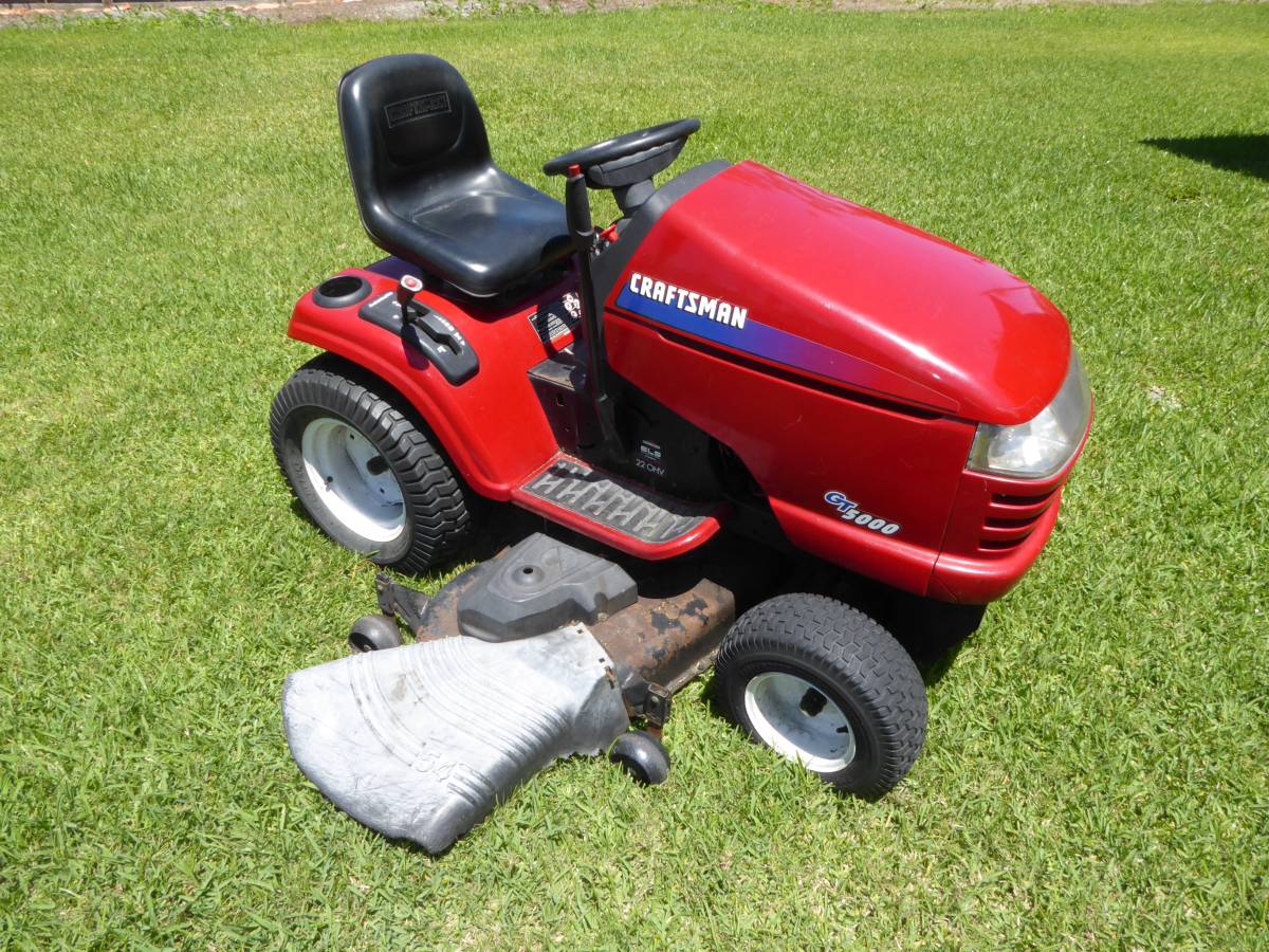 This is a listing for a Craftsman GT-5000 lawn tractor that operates as intended. The mower is in good aesthetic condition, although there is some surface rust on the deck. It includes new front wheel bearings and new gaskets for the case and oil pump, ensuring reliable performance for many more hours. The engine is a powerful Briggs & Stratton 22 HP.