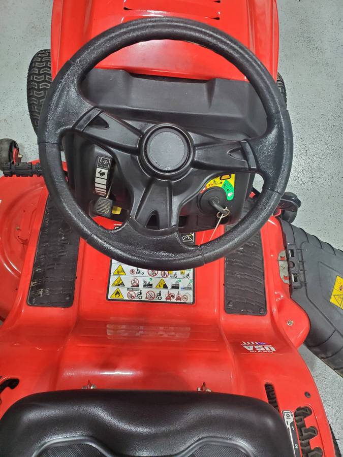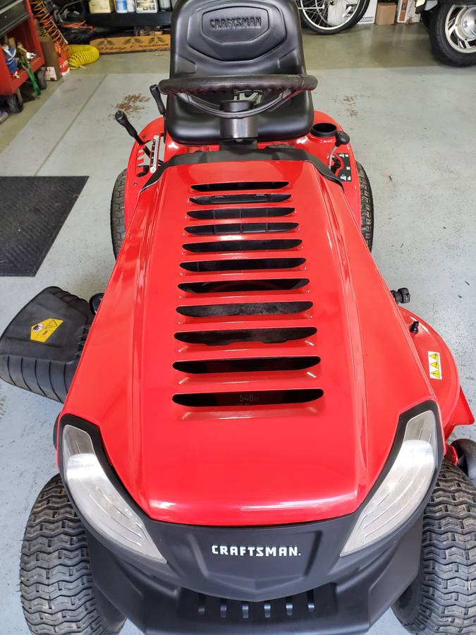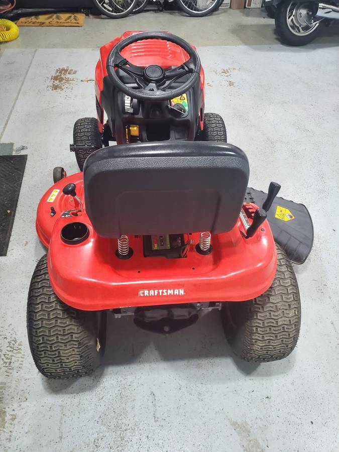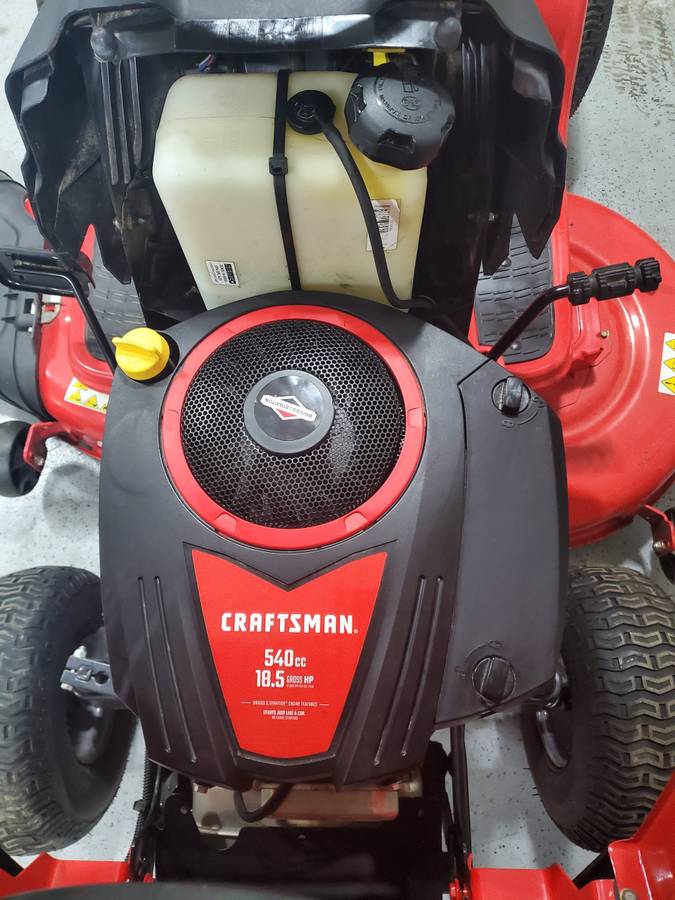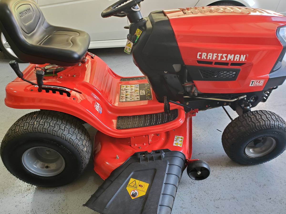 NEARLY NEW!! The CRAFTSMAN T140 is equipped with a robust 547cc (18.5 HP) Craftsman engine. It features a user-friendly electric starting system that requires no priming or choking, along with a durable 46-inch steel deck. This riding mower offers foot pedal control for its automatic transmission and mid-back seating for enhanced comfort, allowing it to navigate your lawn effortlessly with an 18-inch turning radius and Turf Saver wheels. It can reach a maximum forward speed of 5.5 miles per hour and is designed to efficiently cut areas ranging from 0.5 to 2 acres. Recent “full maintenance” has been performed, including a new battery and upgraded LED lights. You can test cut before making a purchase. DELIVERY OPTIONS AVAILABLE.