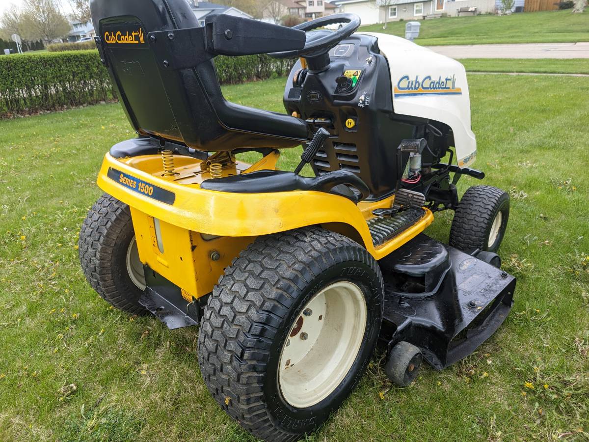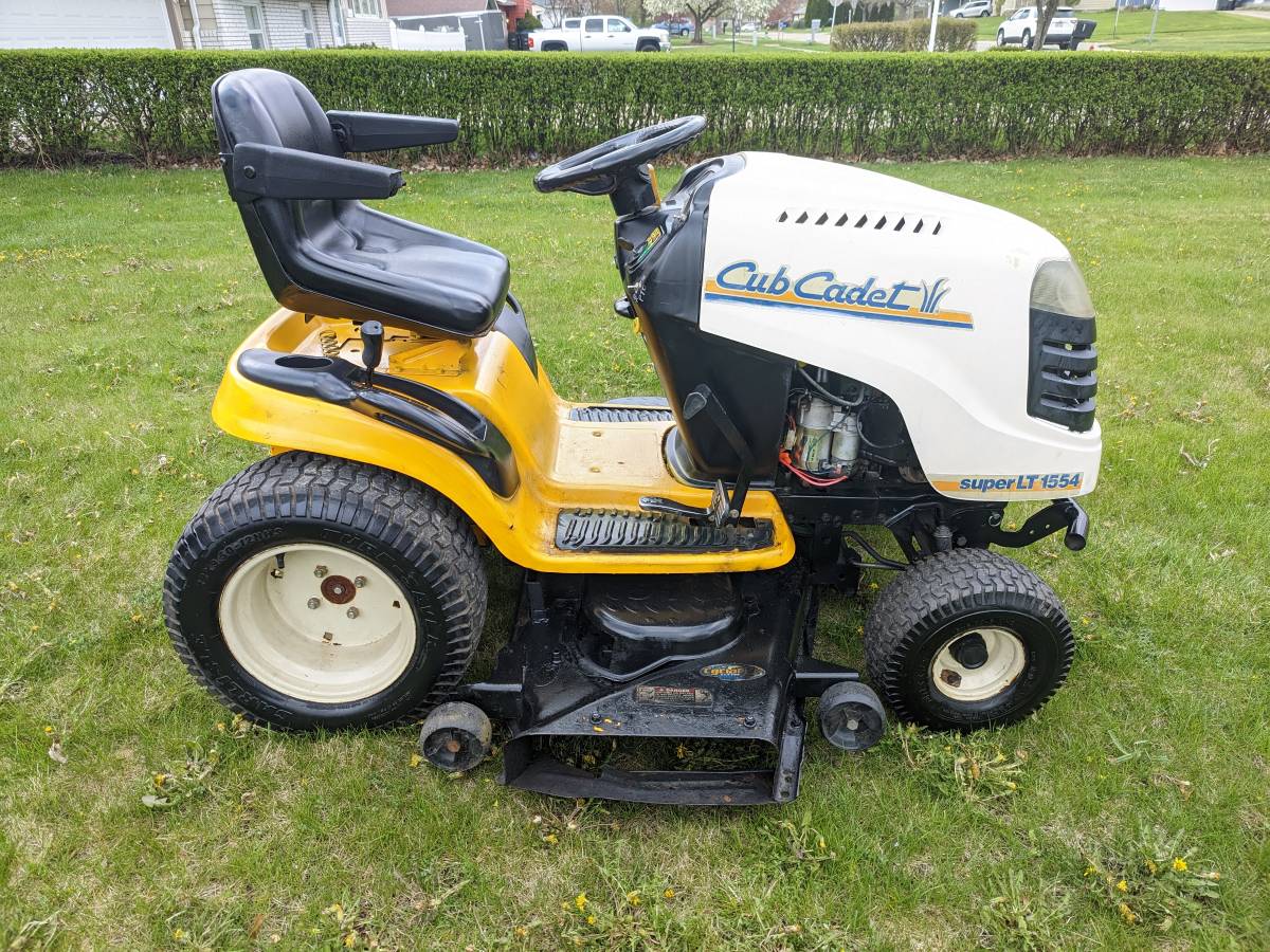 There is a used Cub Cadet Super LT1554 tractor available for purchase, which comes with a 54″ deck and a 27 HP Kohler Command V-Twin engine equipped with a hydrostatic transmission. This tractor has been properly maintained and is in good working condition, having undergone several services in the past year. These services include the installation of new components such as a kevlar deck belt, valve cover gaskets, spark plugs, fuel filter, fuel shut off valve, front tires, ignition coils, battery, and headlight bulbs. Additionally, the carburetor has been cleaned, the hydro transmission fluid has been changed with full synthetic hydraulic oil, and the engine oil has been changed with full synthetic oil. The blades have been sharpened and balanced, the deck has been leveled, and the spindles have been greased.