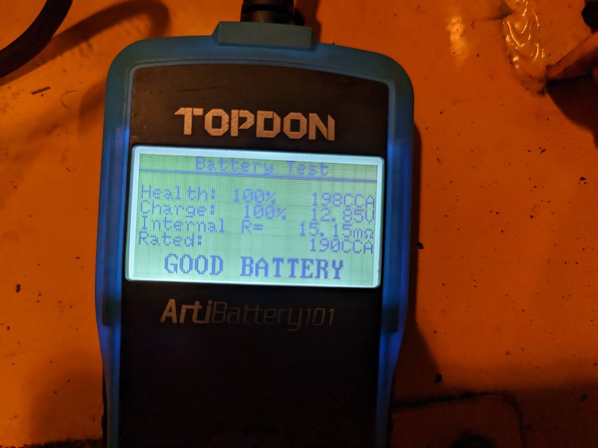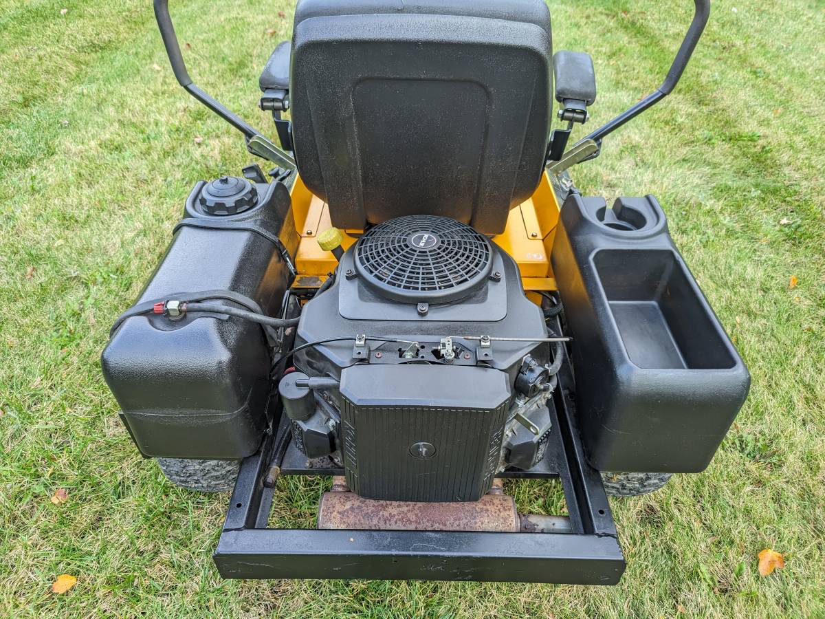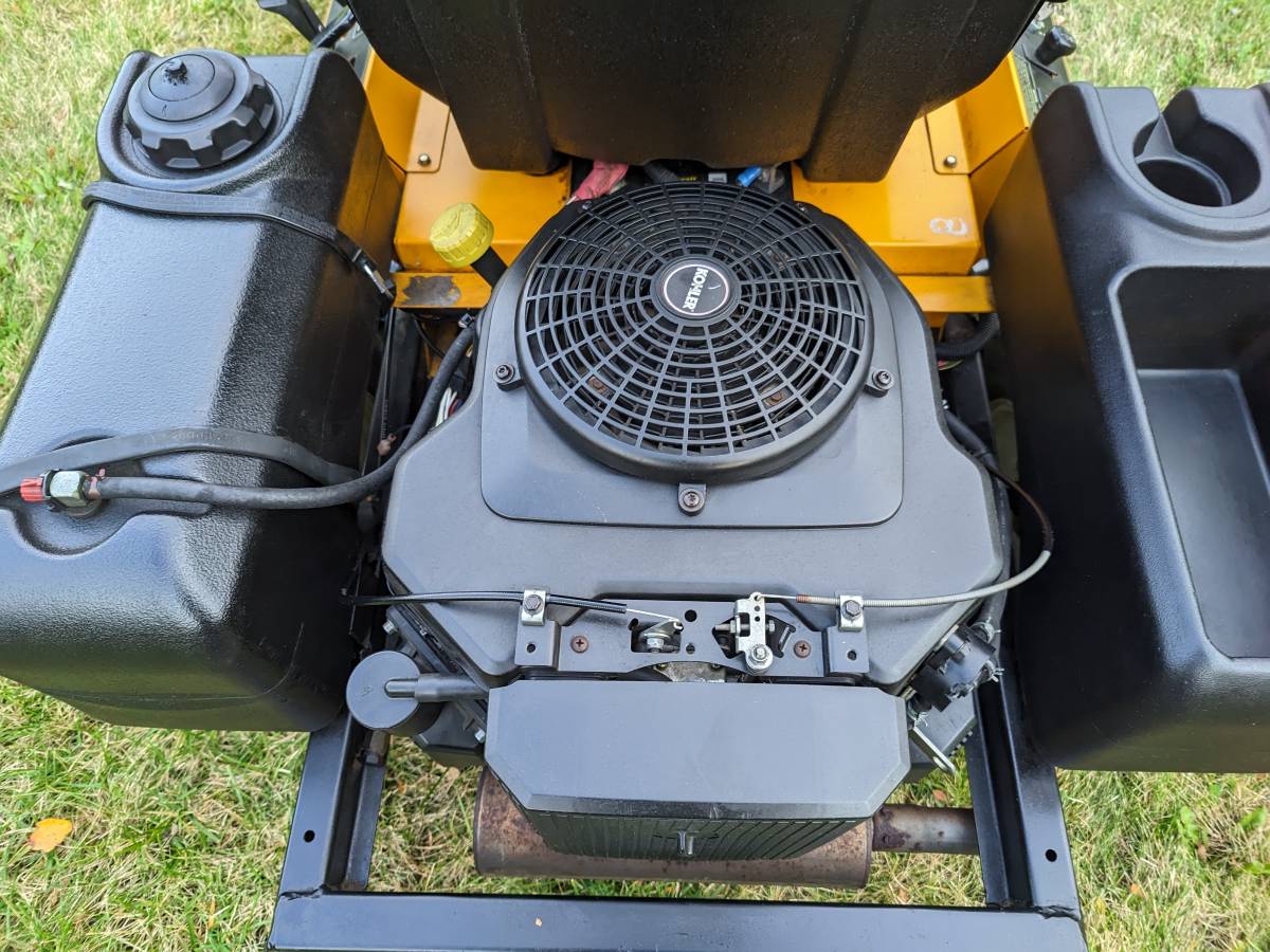 This zero turn mower has a 20 HP Kohler Command V-Twin engine and a 44″ cutting deck. It mows evenly and creates nice stripes. It starts, runs, and cuts perfectly. Recently serviced with new air and fuel filters, fuel shut off valve, spark plugs, deck and transmission drive belts, rear tires, valve stems, and crankcase breather grommet. Ignition coils were cleaned and gapped, blades sharpened and balanced, spindles greased, flywheel magnet cleaned, and engine cooling air vanes cleaned. The battery was trickle charged to full capacity and tested with a Topdon battery tester, showing a health and charge level of 100%. The battery is factory rated at 190 CCA, but the test shows an output of 198 CCA.