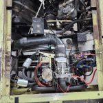 Cushman Zero Turn Lawn Mower featuring a 22 HP Onan Engine. The engine was newly installed 750 hours ago, and the mower has a total of 1685 hours of use. A fresh tune-up was completed just 2 hours ago, which included replacing the plugs, points, condenser, and plug wires. It has been maintained with synthetic oil and operates as expected. The mower is equipped with a 16-bushel grass catcher that can be dumped hydraulically from the seat. Additionally, it comes with an extra deck, a grass catcher basket, a hydraulic cylinder, and the original engine that was replaced. The blades are in excellent condition.