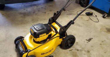 For the DeWalt lawn equipment, this 40V Max mower uses a single 40-volt battery. Even though a 20-inch metal deck is included in the DeWalt 40V Max mower, the real blade measures only 19-1/4 inches. The DeWalt 40V max mower, although it pushes and maneuvers very easily, is not a self-propelled mower. Large 10-inch rear wheels with help from rubber tread to cross any turf. The front tires are only 7 inches in length, but they do not hinder the roll.