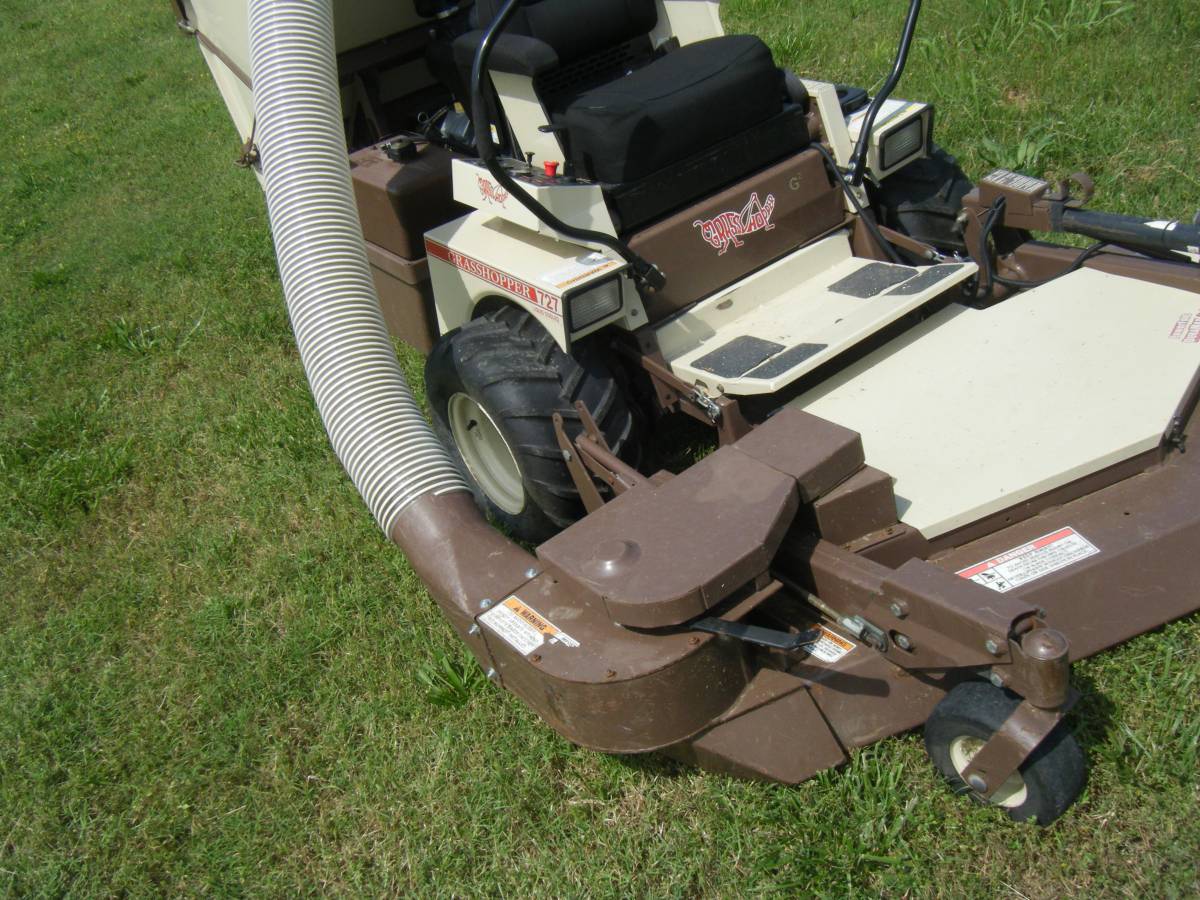 Nice Used Grasshopper Mower 727KW liquid cooled with Grass Catcher. All is great on machine excellent. 61″ cut with powerfold front deck , deck lifts with elect motor for easy blade maintenance. 2006 – 921 hours, liquid cooled. Kawasaki engine. The 4 big tires brand new not old stock but new new tires,it also has grass catcher system with blower. No trades Cash only. Thanks.