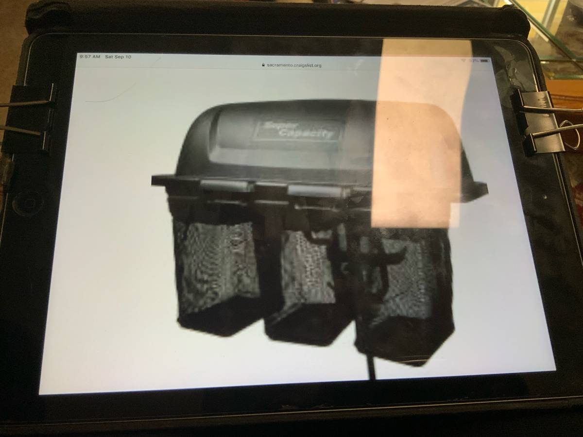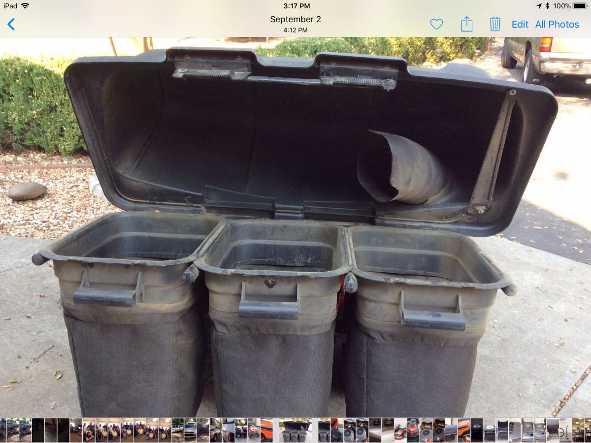 Like new, never used Husqvarna 3-bagger still in the box, complete with all attachments. Fits various lawn mowers with different chutes. Mower not included.