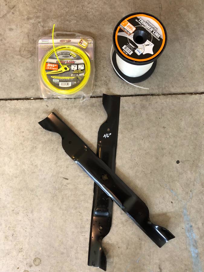 Husqvarna YTH22V46 Riding Lawn Mower with large 22hp engine and 46 inch deck to cut down any size of lawn! Great runs and cuts! Has all the characteristics such as hydrostatic transmission, cruise control, headlights, never flat tires, additional selection of shiny new blades and adjustable deck height! Comes with a heavy duty Troy Bilt 4-stroke weed eater with full of weed eater row! Both run great and are prepared to complete.