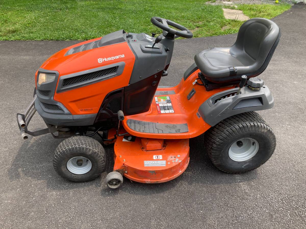 Up for sale is a Husqvarna riding mower model YT42DXLS, in superb operational state. Equipped with a 22 hp V-twin Kohler engine, a 42-inch fabricated deck, and a hydrostatic drive operated by foot pedals. Recently serviced with fresh oil, a new oil filter, sharpened blades, greased components, inspected belts, and a new battery. Recorded usage of 492 hours. Prepared and primed for effective grass mowing.