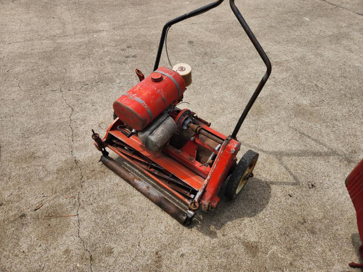 This is a well-maintained 22-inch Jacobsen PGM22 walk-behind greens reel mower. It turns over freely and is perfect for achieving a close, professional-quality cut—even on a regular lawn.