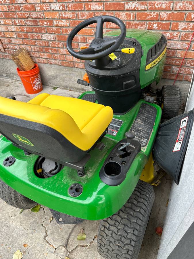 Offering a John Deere D105 automatic riding lawn mower with only 29 hours of use over a few years. Primarily utilized for towing a cart, the blades are likely in excellent condition. Stored indoors, I recently retrieved it and decided to sell. The only issue is that the front tires require tubes or foam filling.