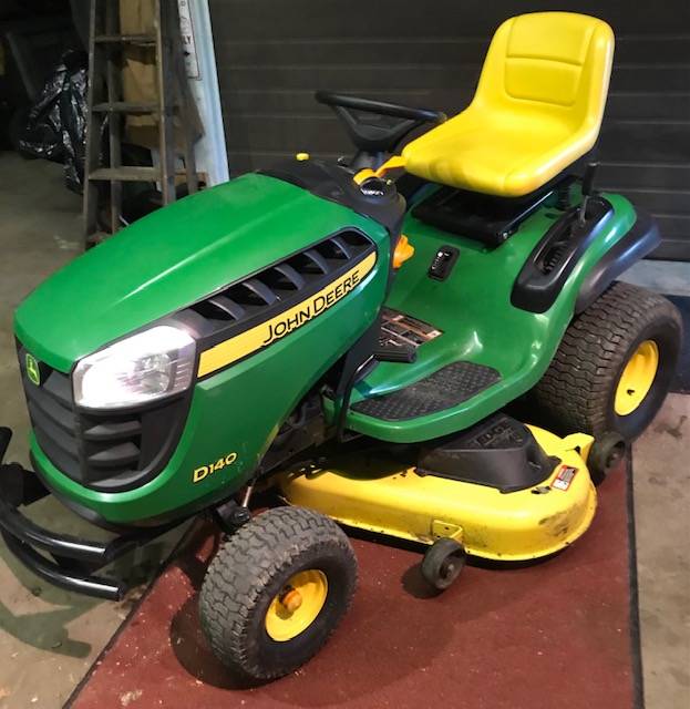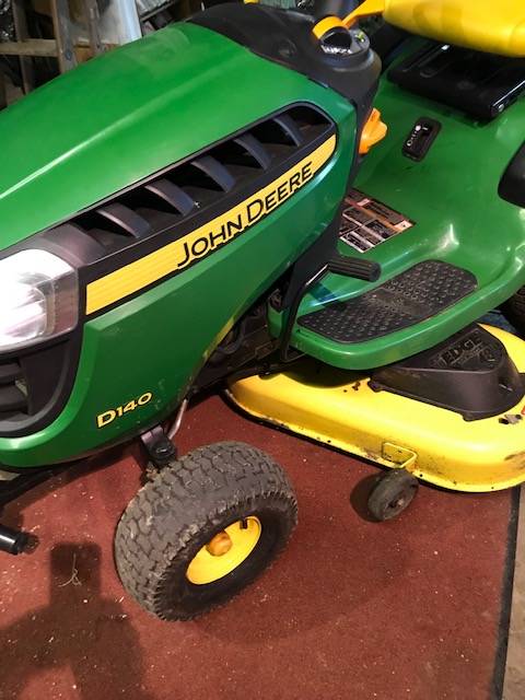 I have a great John Deere D140 Lawn tractor with front bumper, 3 blade, 48′ cut mower, 22 hp, barnd new battery, and a new set of blades in the package Blades cost $46.00. 240 hours. This unit is very clean. Nothing required. Always maintained. Kept in a heated garage. Priced to sell for $1100.00.