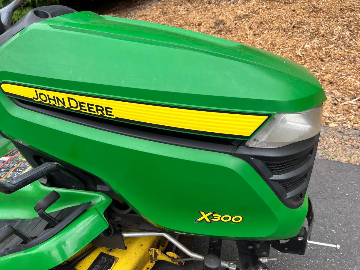 For sale is a high-end dealer-sold John Deere X300 with only 179 hours of usage. It is equipped with a powerful 18.5 hp Kawasaki v-twin motor and features a larger 48-inch deck, which is typically 42 inches. I’ve recently performed maintenance on it, including oil change, filter replacement, fuel filter change, spark plug replacement, and air filter cleaning. The engine is in excellent condition. However, it seems the mower was stored outside for a considerable period, affecting its appearance, so I’ve already reduced the price accordingly.
