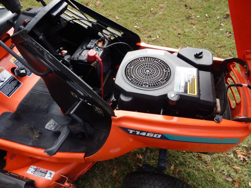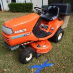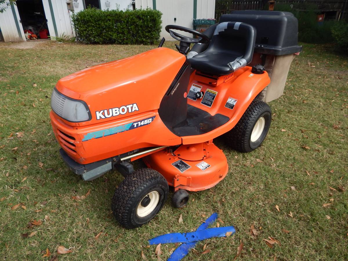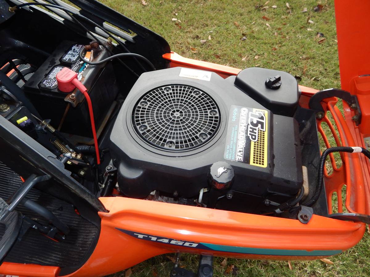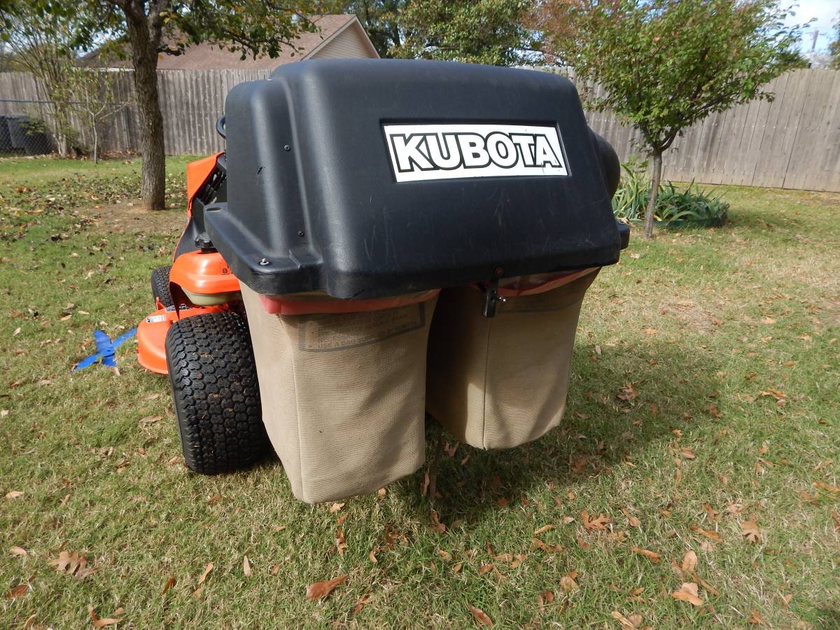 Runs and drives 100%, NEW PTO deck belt, blades sharpened, all connections oiled. The front end hood and engine cowling were replaced and says T1460 but this mower is a model T1670. Kohler 15 HP engine is strong and runs perfect. Good, strong Kubota battery. Mowing deck is 100% and I have High-Lift blades on it for maximum pickup discharge into the grass catcher bags. Recent oil and filter, air filter and gas filter. Last year I replaced the ignition module, deck mowing belt and spark plug. The plastic tube grass shoot has a crack and I used duck tape around it, that works just fine. It’s about 10 years old, paid $3,500 for it. Kubota is a quality mower that I bought new and I have always maintained and took care of it.