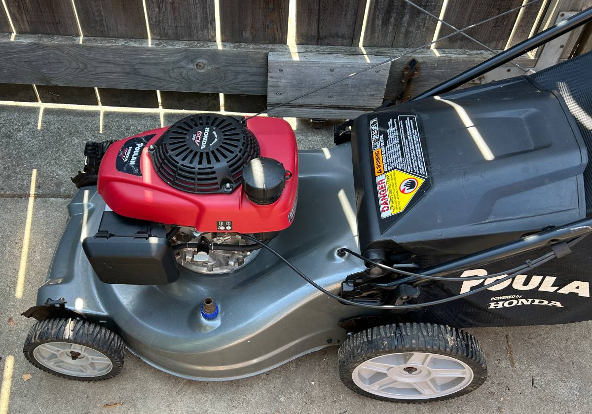 Honda Self Propelled GCV 160cc Engine. No priming necessary. ReadyStart, no prime, auto choke. Just pull for power starting system. This was my father’s who passed away soon after buying the mower.