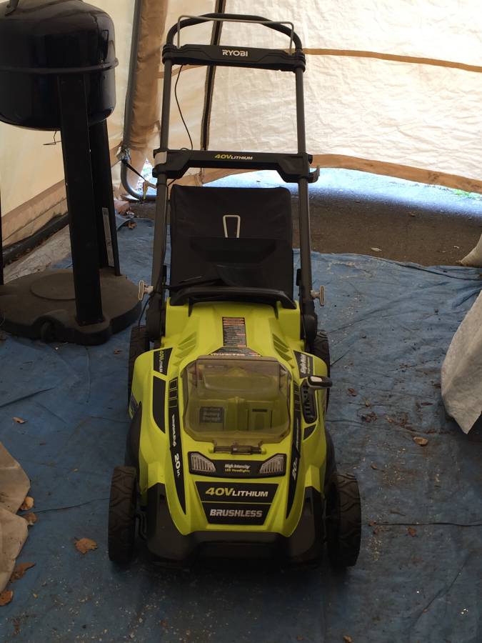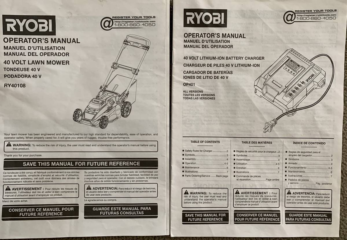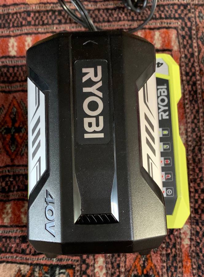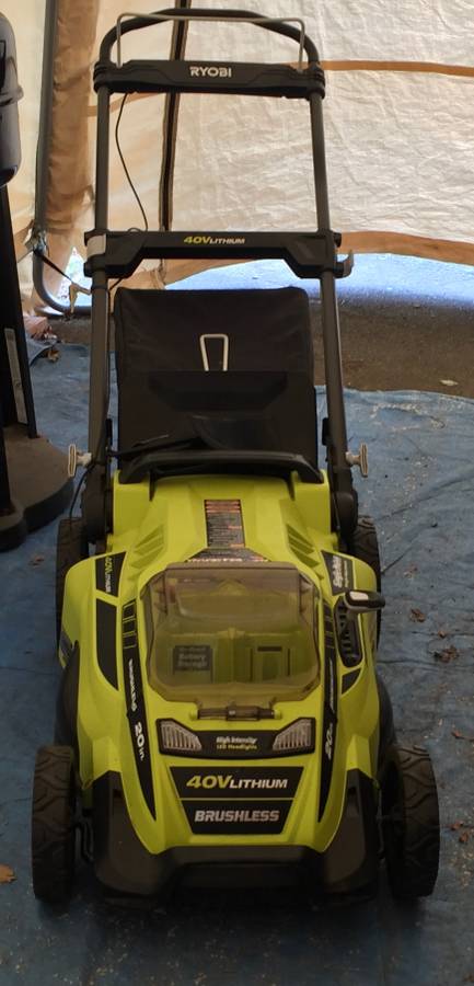 Used RYOBI RY40108 Cordless Lawn Mower & OP401 Battery Charger for sale. The lawn mower and the charger are in pristine condition. We are using it twice, and then our yard was landscaped so that we no matter how long need to have a lawnmower. It’s a 40 V lawnmower and a 40 V lithium ion battery charger.