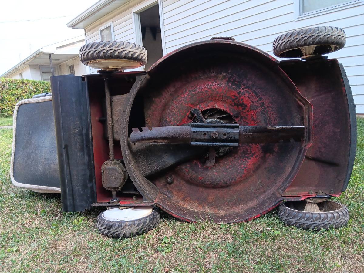 – Versatile 3-in-1 options: bagging, mulching, or side discharge. Please note that the bag has some burn holes and signs of wear from contact with the frame, so I recommend replacing it. The frame itself is in good condition (approximately $70 for a new one).