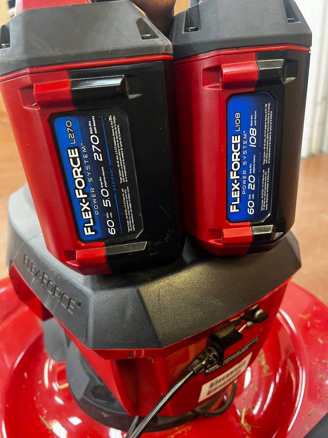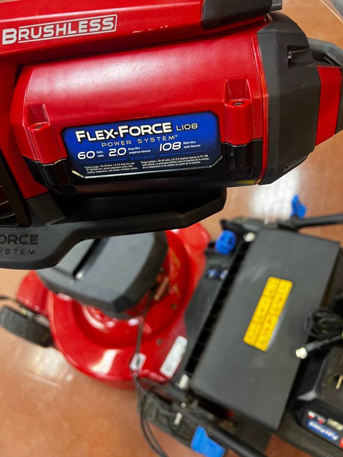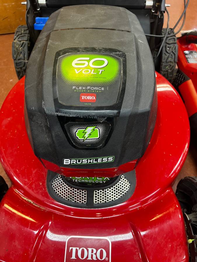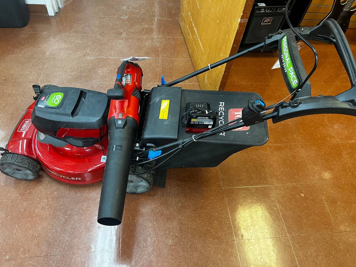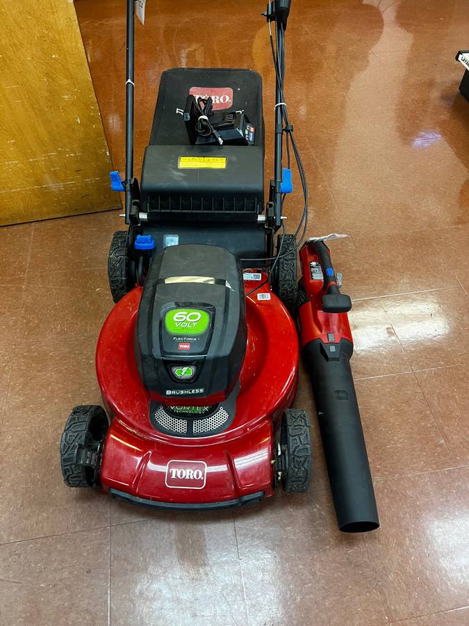 Selling a Toro 60V Flex-Force cordless self-propelled lawnmower along with the matching Toro 60V leaf blower.