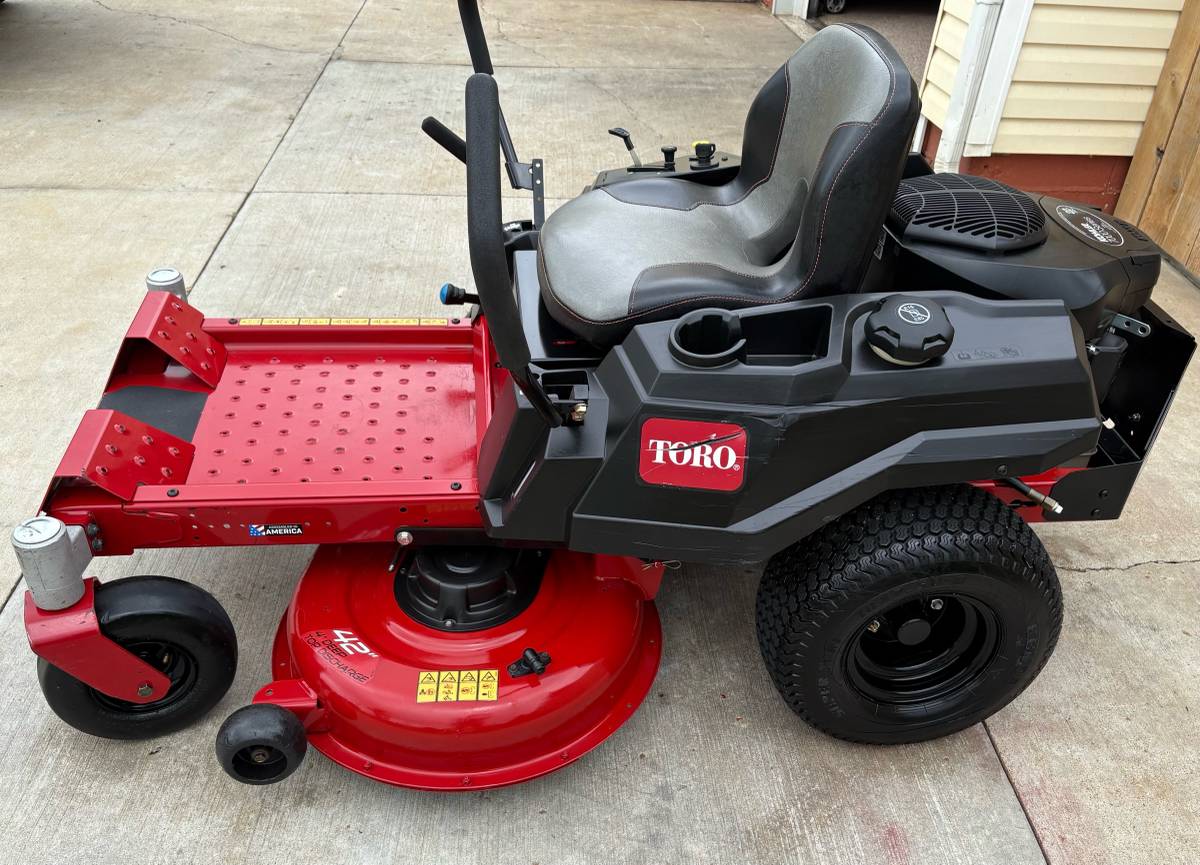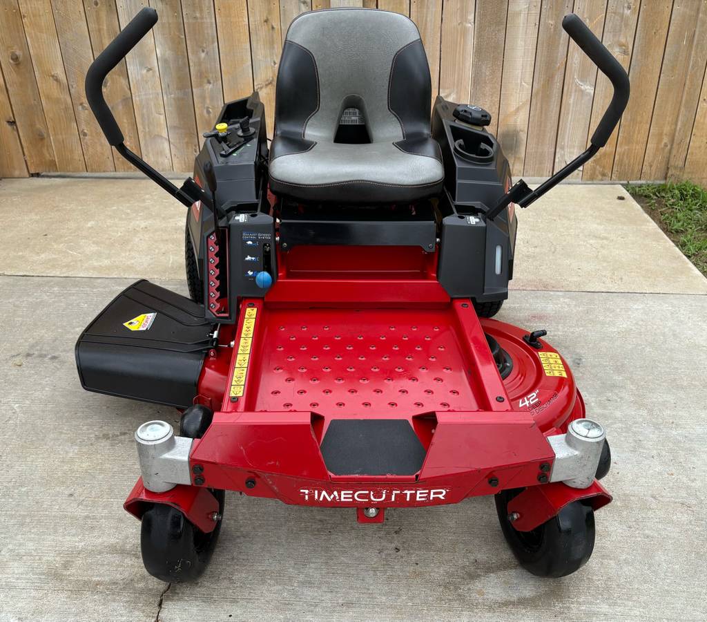 Up for sale is a used Toro TimeCutter 42″ zero-turn mower powered by a 22hp Kohler Pro V-Twin engine.
