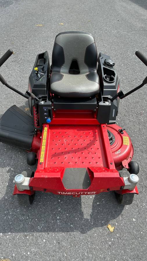 This is a nearly brand-new Toro TimeCutter Zero Turn Mower (Model 75742) with only 6 hours of use. Purchased new from Home Depot for $3,800, this model is currently unavailable and in high demand.
