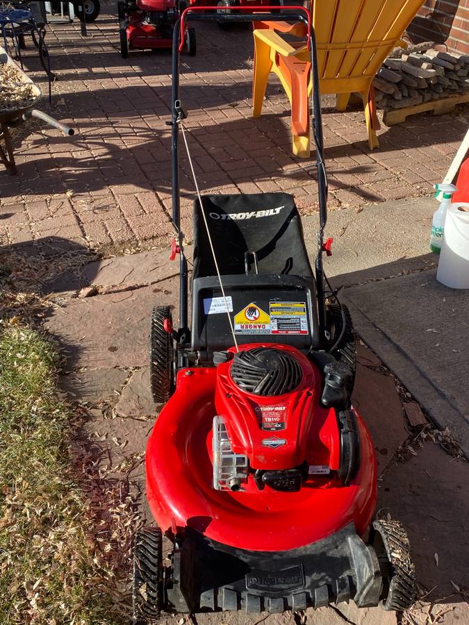 This is a nice TB110 Troy Bilt push lawn mower. 21 inch deck for cutting. Choke is ready to start. This mower in very good shape. It starts quite quickly and even when it is very thick, it does a good job of cutting our grass. The efficiency of the mower was of great importance. Asking for 130 dollars or the best offer. Please text me if interested.