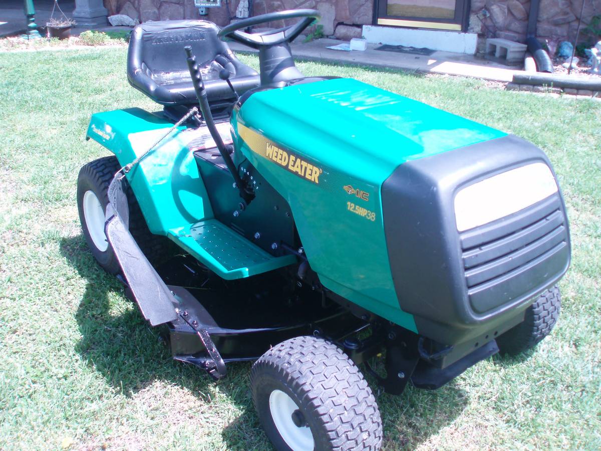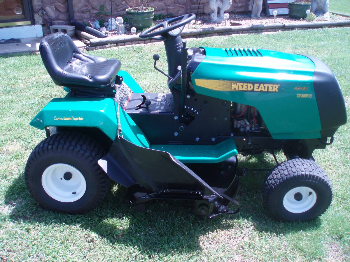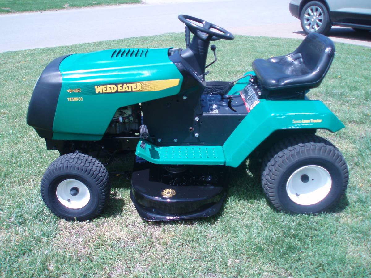 The Weed Eater WE12538K is a 12.5 HP, 38-inch riding lawn tractor manufactured in 2002. It’s designed for residential lawn care and is equipped with a Briggs & Stratton engine.