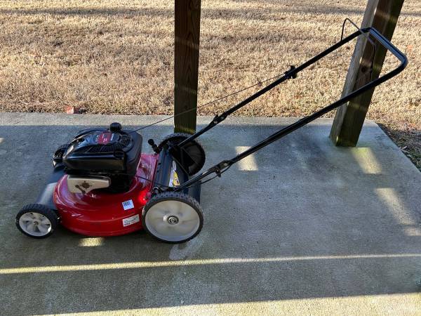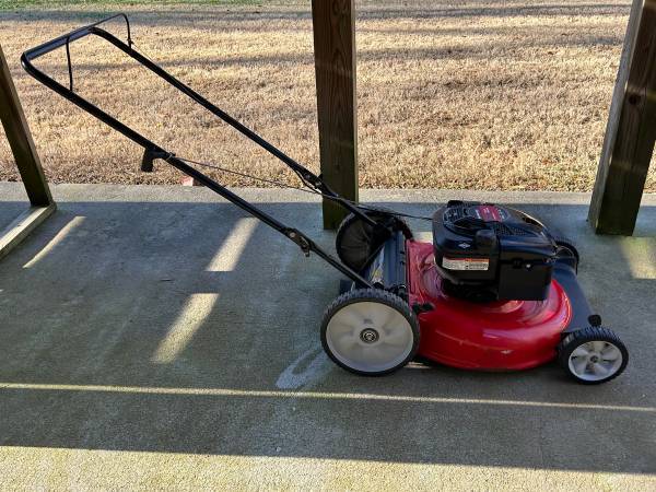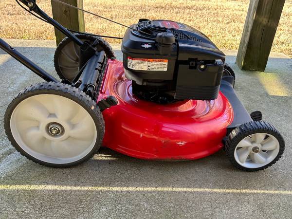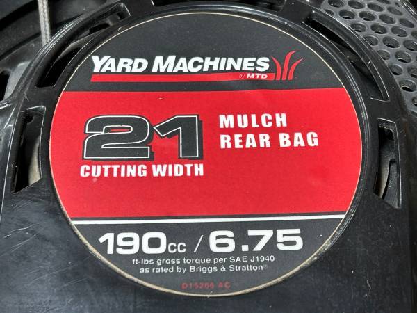 This walk-behind lawnmower is exceptionally well-maintained, showcasing no rust or signs of abuse. It’s in a like-new condition, branded as Yard Machines by MTD. The 190cc Briggs and Stratton engine features a “Ready Start” carburetor, ensuring a hassle-free first pull start with no need for priming or choking. This mulching mower has recently undergone servicing, including an oil change, thorough cleaning of the fuel tank, installation of a new fuel line, carburetor cleaning, carburetor rebuilding, and a new air filter. It operates seamlessly, requiring no further attention, and runs on ethanol-free fuel. I can share a twenty-second video of the mower in action if you’re interested.