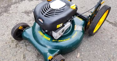 The Lawn Boy Gold Series 3 speed self propelled mower with a 4.5 HP 2-cycle commercial grade engine is in good condition. The throttle cable may be disconnected or broken, causing issues with the throttle and choke. It also has trouble starting, especially when cold. The primer bulb may need to be replaced. However, once it’s running, it works well and cuts efficiently. This model is from 1995 and has a fuel shut-off. The blades are sharp.