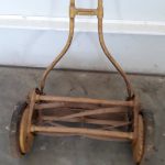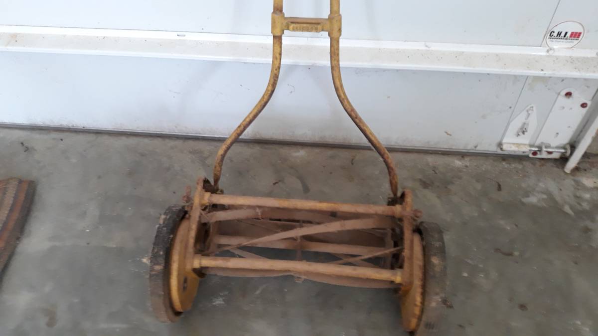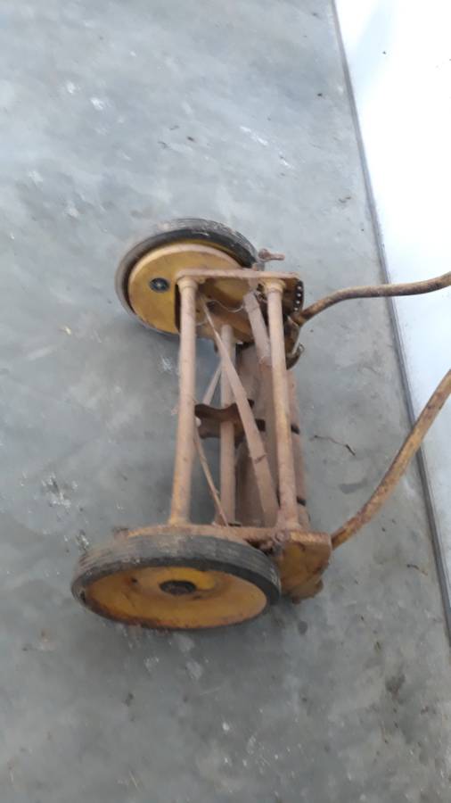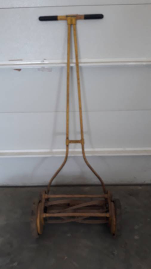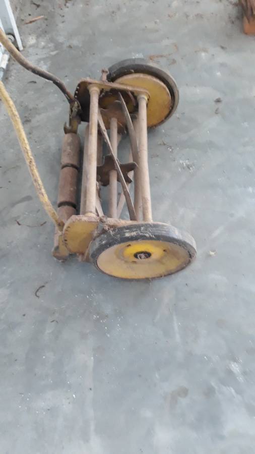 Vintage Clemson Special Model On hand push reel mower for sale. this is the finest lawn mower bought in the 1930’s. Previously, I’ve sold his other similar style of mowers, but I’ve kept on to the best performing mower so far. With a 16-inch cutting swath, it is 23-inch-wide & has 10-inch solid rubber wheels on five steel spokes. You could cut your lawn, and you could see a simpler life. This would make a good piece of discussion, too. Good condition.