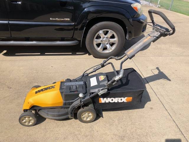 I am selling a WORX model WG788 19-inch cut cordless lawn mower that is powered by a 36V battery. This mower allows you to mow your lawn quietly without any gas or oil smells. It is a smarter, cleaner, and greener option compared to gas mowers. The package includes two 36V batteries (WA3220), a charger, and a grass catcher. We no longer need this mower as we have moved into a condo. The price is $100.