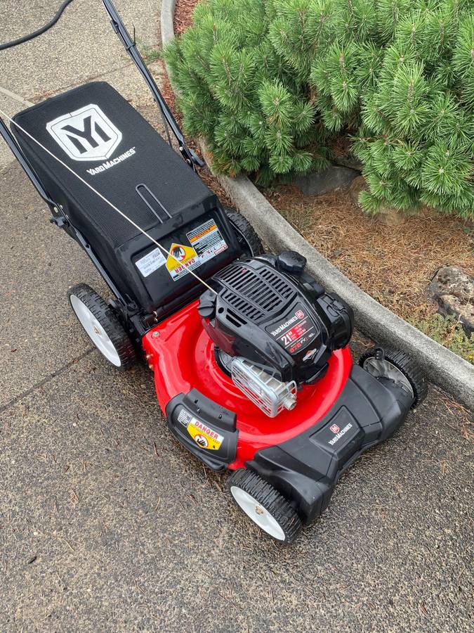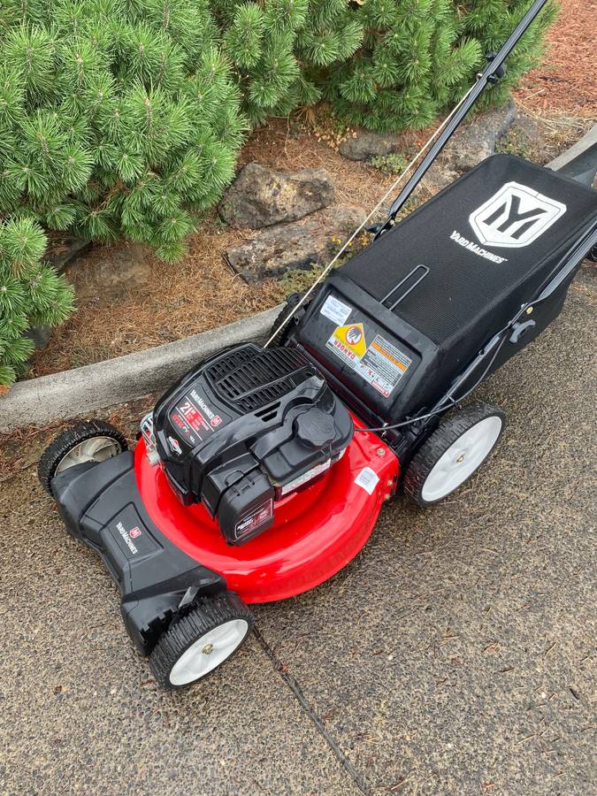 I’m selling a Yard Machine push mower that’s in great condition. It starts easily and runs well. I recently changed the oil and gave it a tune-up. You can use it to bag or mulch your grass. The large wheels make it easy to push. I’m the second owner and have always kept it inside. It’s half the price of a new one! The model is 675EX and it has a Briggs and Stratton engine with 163cc.
